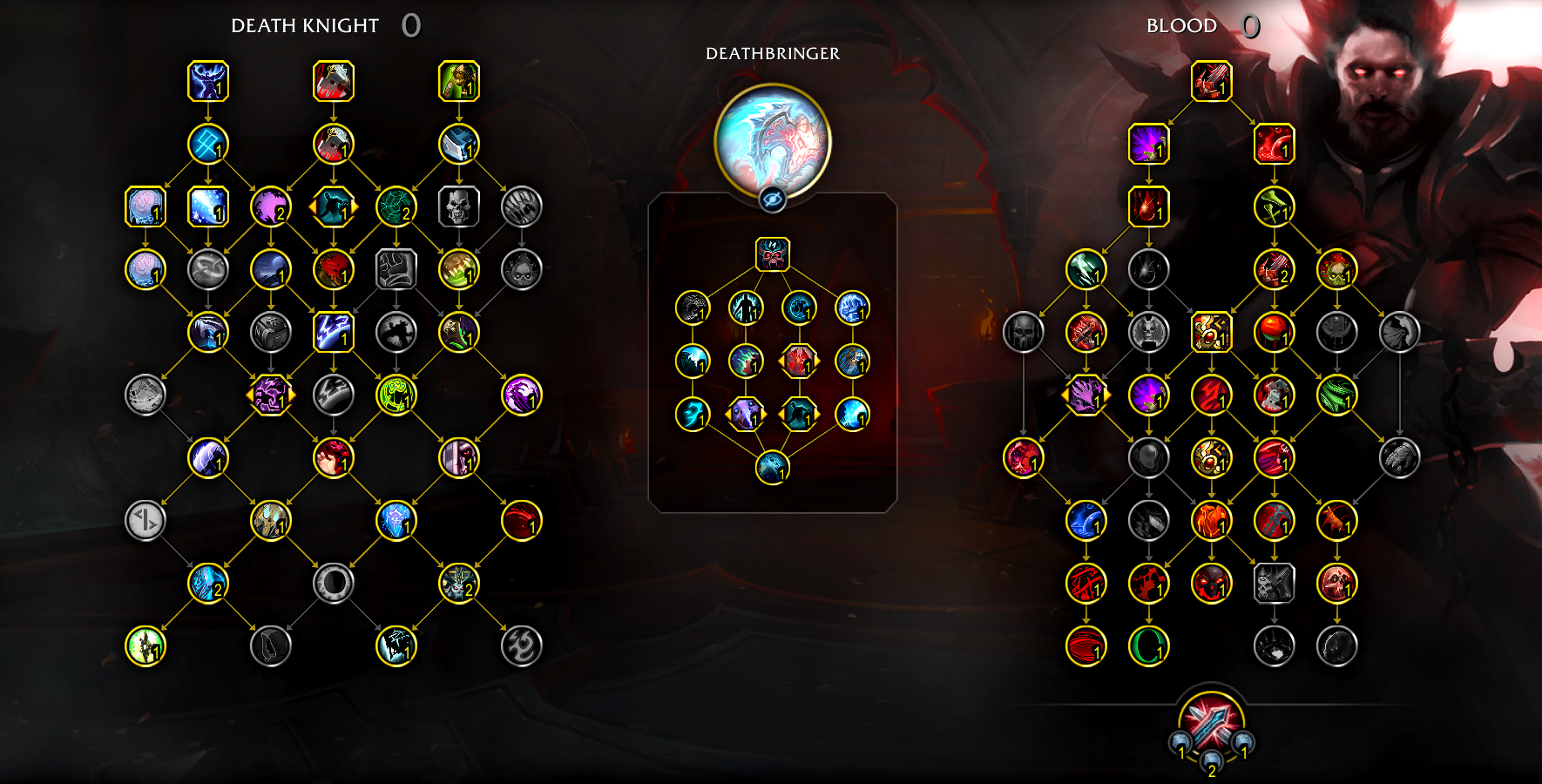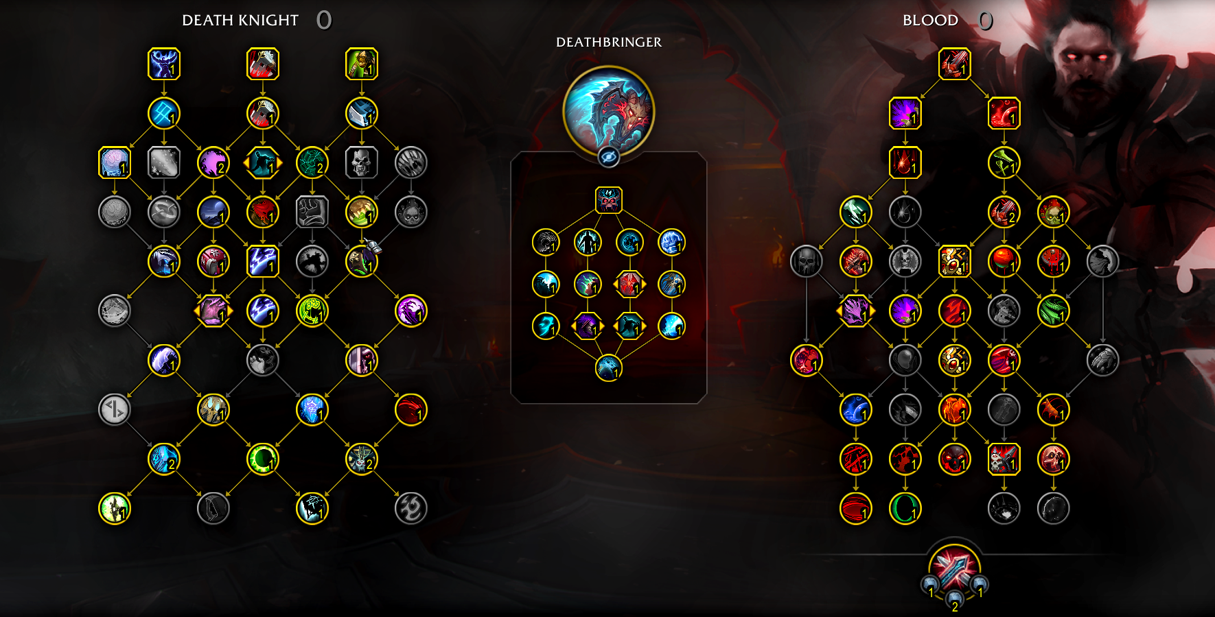 ou DK Sang ou BDK (Blood Death Knight en Anglais) est un tank mêlée en plaque se jouant avec une arme à deux mains. Il utilise un Bouclier d’os